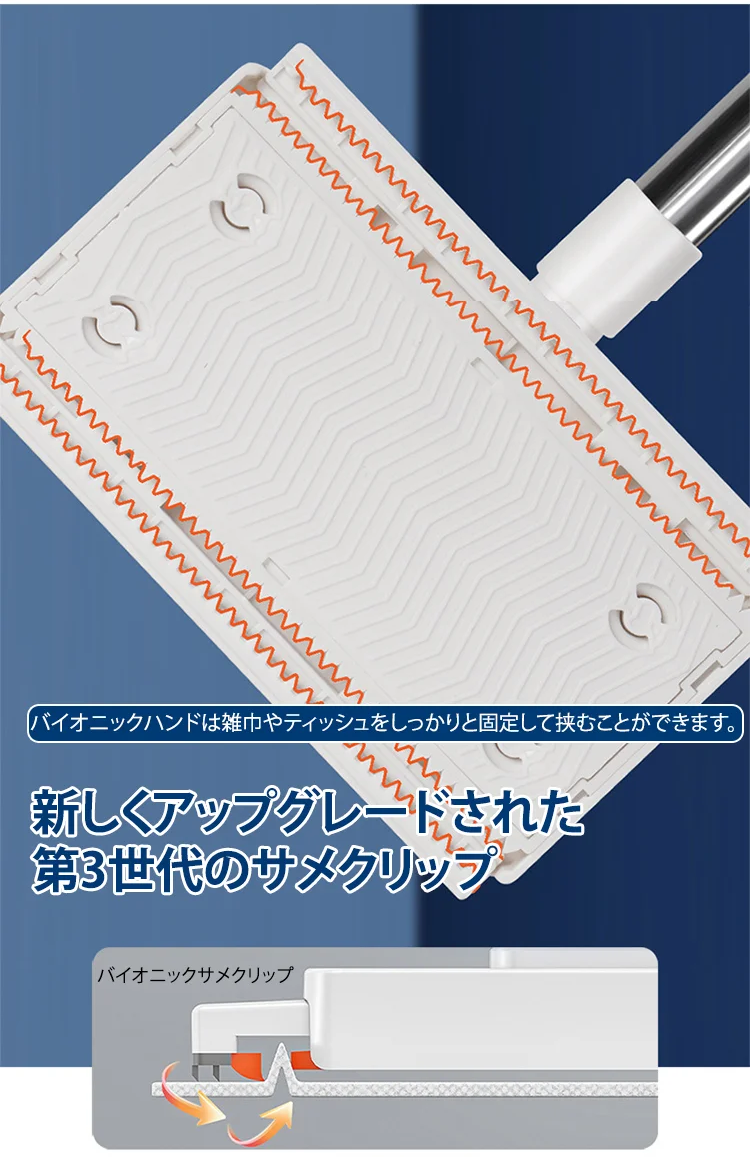 ● 自動キャッチ機能により、モップが汚れた部分を自動で取り除き、手を汚さずに簡単にお掃除ができます。